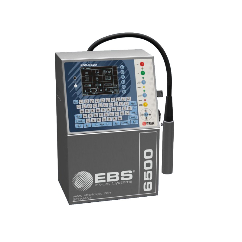 EBS-6500 es una impresora industrial de un solo cabezal INK-JET diseñada para el etiquetado de objetos que se mueven en un transportador de fábrica sin necesidad de contacto directo. Las impresiones se producen con tintas basadas en colorantes. La característica que diferencia a esta impresora de otras es el hecho de que no necesita ser suministrado desde un sistema de aire comprimido.