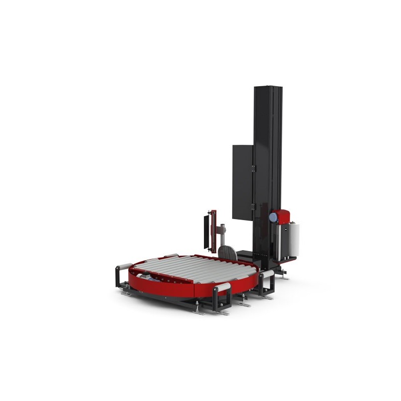 Envolvedoras o enfardadoras automáticas con plataforma: sistema de envoltura automático basado en una plataforma que gira concéntricamente con el palet. Este modelo de envolvedoras no requiere presencia de los operarios al final del ciclo gracias al sistema de corte y pinza. En la envolvedora o enfardadora TRM500L la entrada, posicionamiento y salida de la carga es automática, con las interconexiones necesarias con transportadores y otras máquinas que conformen el sistema.