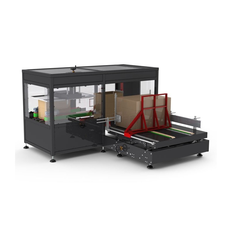 La estructura básica consta de un almacén de cajas plegadas, un sistema para abrirlas, cerrar las solapas inferiores y precintar el fondo y entregar la caja montada con el fondo cerrado y preparada para introducir productos verticalmente.Las cajas plegadas situadas en el almacén de la máquina son tomadas por un sistema de ventosas al vacío que las abre y coloca en la posición de formado, las ventosas y un brazo angulado las transporta longitudinalmente a través de la máquina para un rápido cerrado de las solapas inferiores quedando la caja formada para su llenado y posterior sellado o también para ser selladas en su parte inferior y posterior llenado.