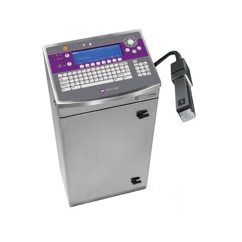 El modelo 9040 imprime todo tipo de códigos, incluyendo logotipos, Datamatrix, etc. Su amplia gama de tintas cumple los requisitos de todas las industrias.